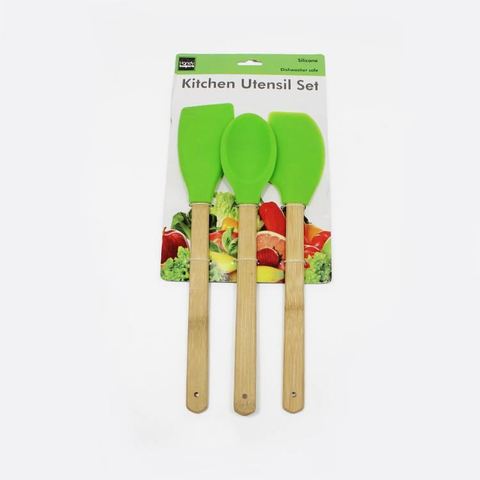 Utensilios de cocina de silicona antiadherentes resistentes al calor, con mango de bambú, venta al por mayor, superventas