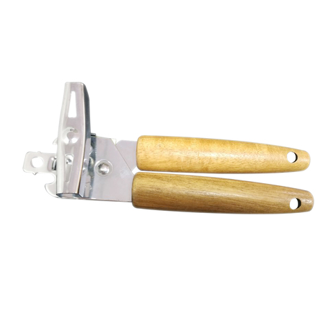 Abrelatas de lata de acero inoxidable, mango de madera de Acacia fina profesional